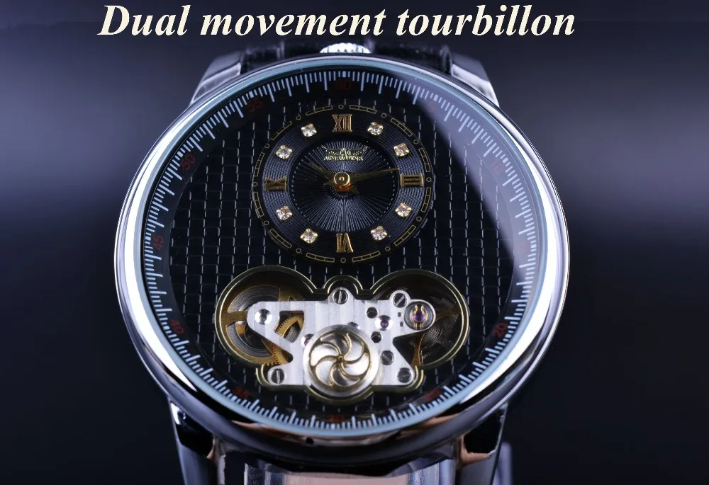 Jaragar Classic Dual Beweging Ontwerp Automatische Quartz Horloges Klok Heren Horloges Top Brand Luxe Horloge Mannen Skeleton Polshorloge