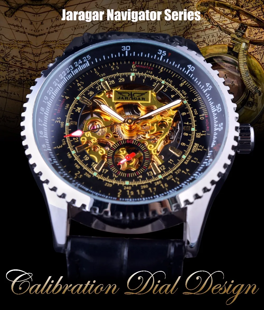 Jaragar Kalibratie Wijzerplaat Display Golden Beweging Binnen Transparante Case Mens Watch Top Merk Luxe Mannelijke Polshorloge Automatische