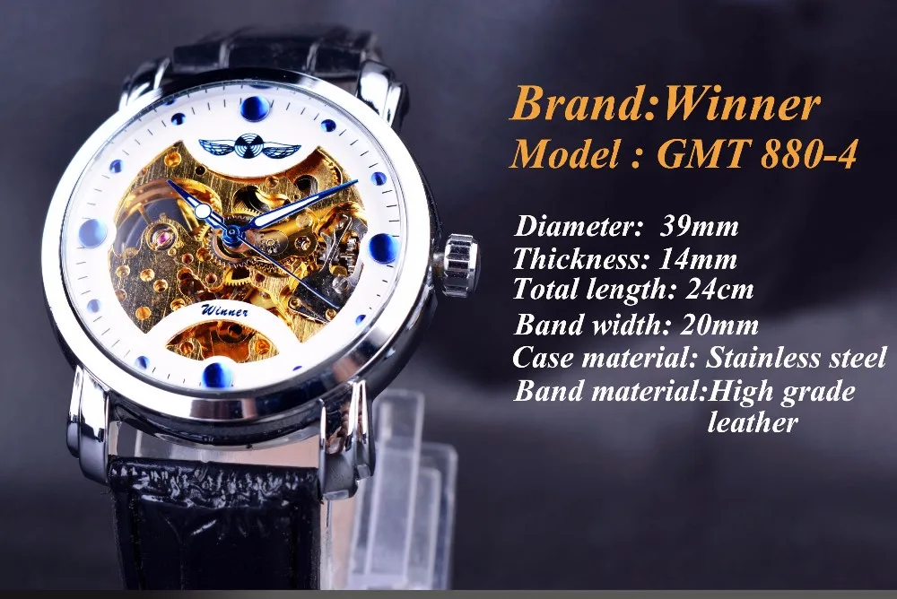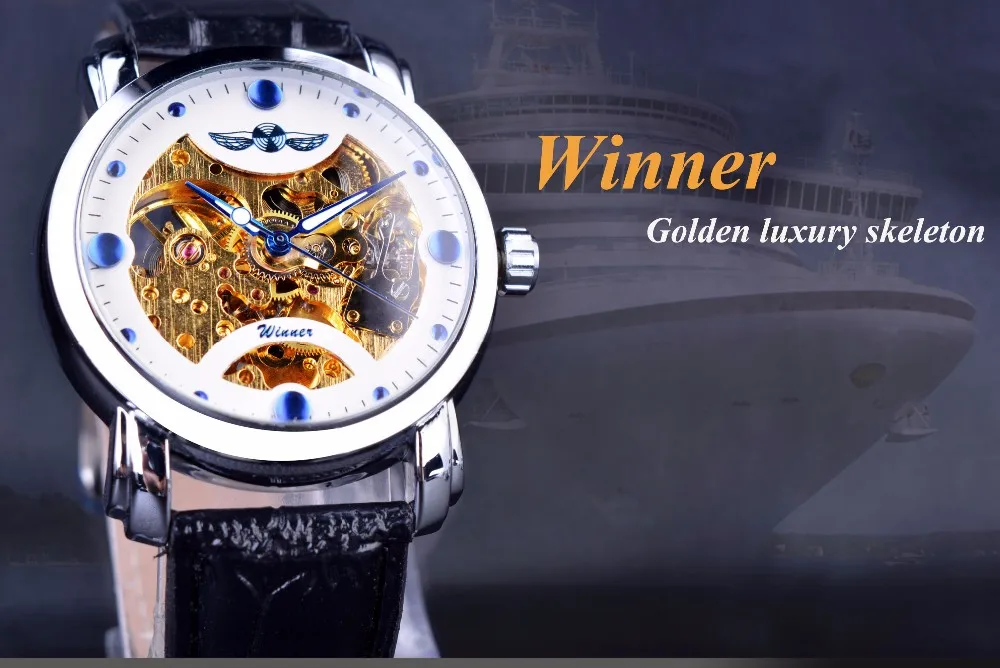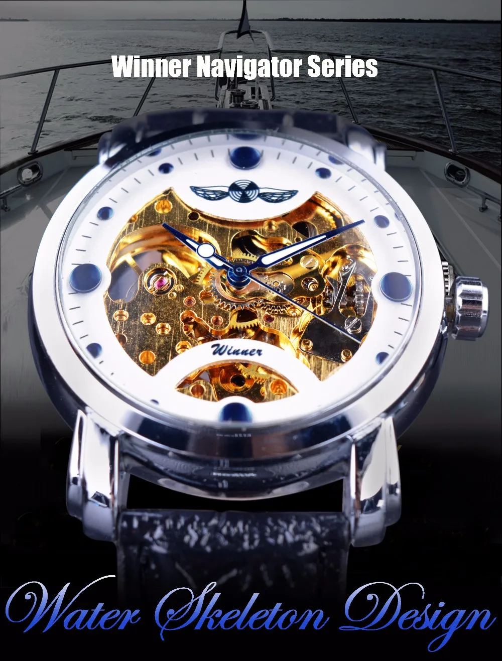 Winnaar Navigator Serie Transparante Case Skelet Binnen Casual Heren Horloge Topmerk Luxe Automatische Mannelijke Polshorloge Klok Mannen
