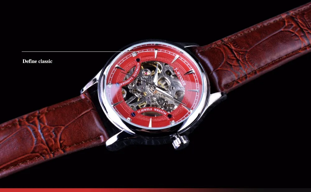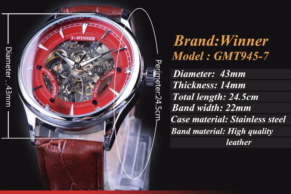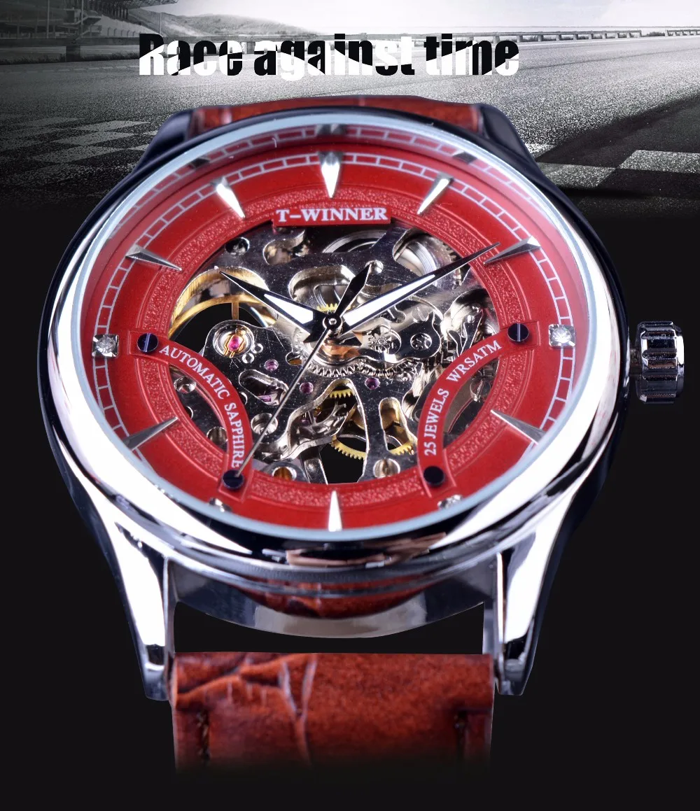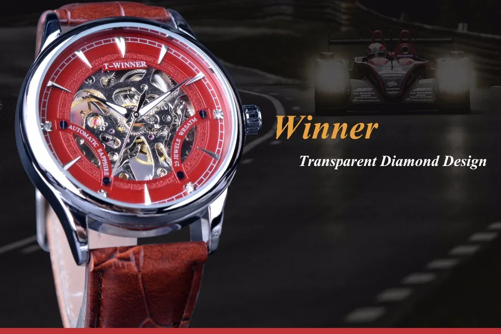 Winnaar Red Racing Mode Stijlvolle Rode Skelet Sport Ontwerp Klassieke Transparante Mannen Horloges Top Brand Luxe Mechanische Horloge
