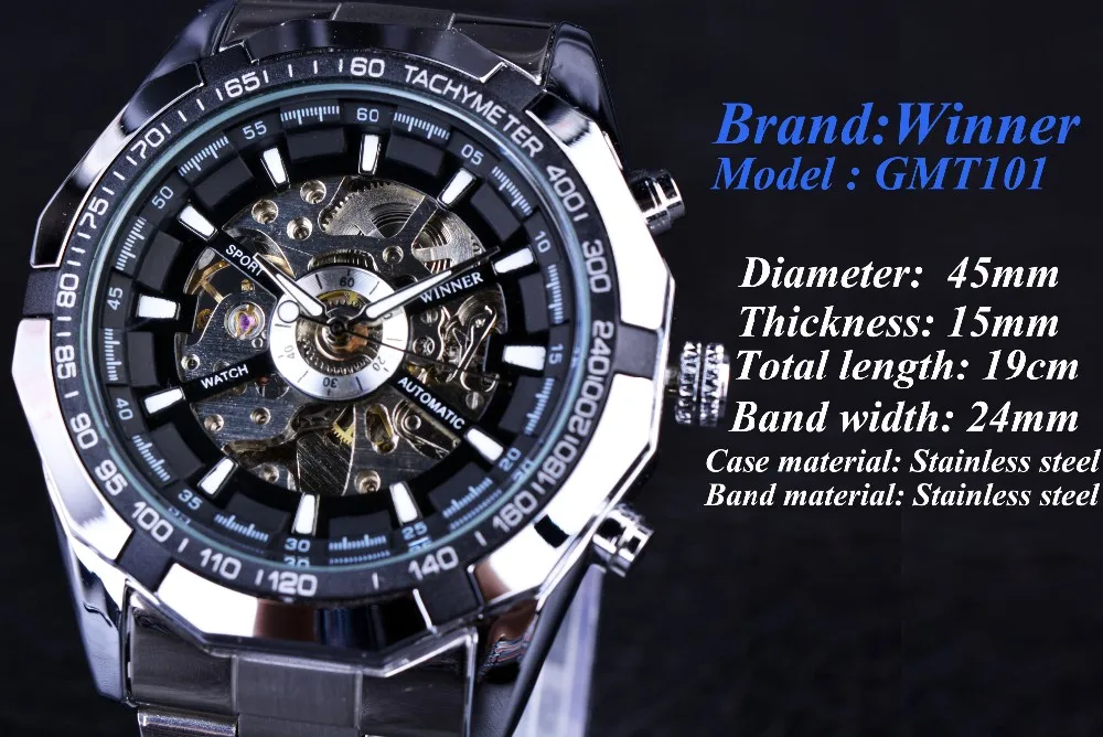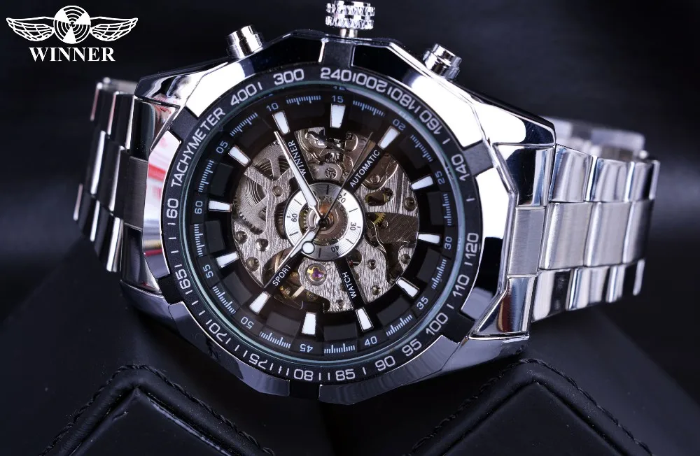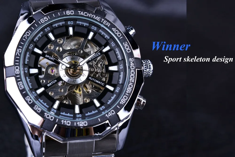 Winnaar Sport Skeleton Rvs Designer Mannen Kijken Topmerk Luxe Automatische Casual Mechanisch Horloge Klok Mannen Polshorloge