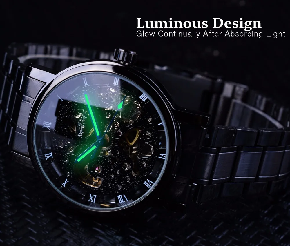 Winnaar Transparant Steampunk Montre Homme Zwarte Retro Casual Heren Horloges Top Brand Luxe Volledige Steel Skeleton Mechanische Horloge